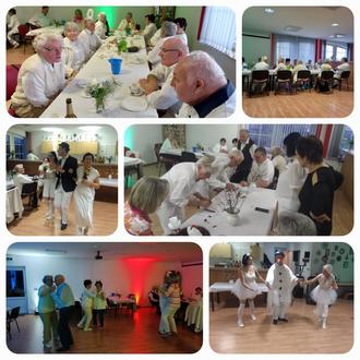 Mit dem Thema „Schnee Ball Party – Alle tragen weiß“ sind wir mit unseren Senioren in das Jahr 2023 gestartet und das Schönste, alle kamen auch in Weiß. Zu Beginn gratulierte Karin den „Geburtstagskindern“. Inzwischen wurden die Gläser der Senioren mit Sekt gefüllt und gemeinsam stießen wir auf ein gutes Jahr 2023 mit abwechslungsreichen Veranstaltungen und vor allem, auf eine gute Gesundheit an. Zum Kaffee ließen sich alle die sahnegefüllten Windbeutel schmecken und die waren wirklich lecker und wie immer vom Bäcker Töpfer. Mit einem abwechslungsreichen Programm überraschten die Helfer die Senioren. Und alle machten begeistert mit. Auch im Wettstreit um den schönsten geschmückten „Winterbaum“ mit Schneemännern und Schneeflocken ging es lustig zu. Den Schmuck dazu mussten die Senioren erst noch basteln. Und wer am schnellsten im Team war, hatte natürlich den kleinen Wettstreit gewonnen. Am Ende waren alle Gewinner. Unser DJ Micha spielte zur Unterhaltung und zum Tanz, was einige reichlich nutzen. Und in der Zwischenzeit bereitete Elke das Abendessen vor; Sahnegeschnetzeltes mit Pilzen und Reis. Der Duft breitete sich schon im Raum aus. Den Senioren hatte es zum Abendbrot sichtlich gut geschmeckt und das bestätigten sie auch gegenüber der Köchin Elke. Nach dem Abendessen wurde nochmals das Tanzbein geschwungen. Ein unterhaltsamer Nachmittag ging wieder einmal zu schnell zu Ende und alle freuen sich schon auf den Fasching am 11. Februar zum Thema „Nachtwäsche pur“. Wer möchte kann sich gern dem Thema entsprechend kleiden.