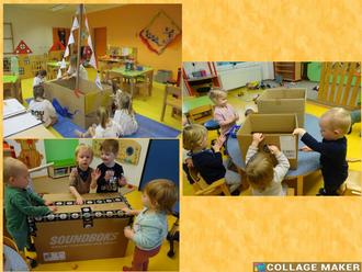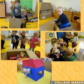 Schnell setzten die Kinder ihre eigenen Ideen und Vorstellungen individuell oder gemeinsam um. So entstanden im Kindergartenbereich zahlreiche Häuser, Puppenwagen und Betten, Autos, ein großes Schiff, um die Welt zu umsegeln und ein Hexenhaus, welches die Kinder anregte das Märchen „Hänsel und Gretel“ zu spielen. Im Krippenbereich wurden auch zahlreiche Kartons bemalt und gestaltet, es entstanden auch hier Häuser, Autos und Puppenbetten. Kleine Papprollen wurden beklebt und mit verschiedenen Materialien gefüllt, welche zum Musizieren genutzt wurden. Die Eltern der Krippenkinder gestalten gemeinsam mit ihren Kindern ein Spielzeug für den Spielzeugtag.