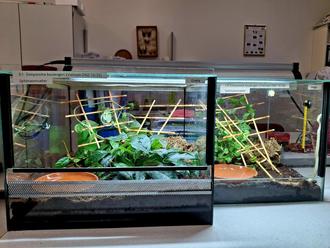 Aktuell bewohnen Gisela und Hugo ihre jeweiligen Aufzuchtterrarien im Biologie-Vorbereitungszimmer. Dort finden sie optimale Bedingungen, um sich in aller Ruhe an ihre neue Umgebung zu gewöhnen. Temperatur, Luftfeuchtigkeit und Rückzugsmöglichkeiten sind genau auf die Bedürfnisse dieser faszinierenden Reptilien abgestimmt. Betreut werden sie von den Schülerinnen und Schülern der GTA „Grünes Klassenzimmer“ und Herrn Hackel, die mit viel Engagement für das Wohl der neuen Bewohner sorgen.
