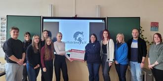 Im Januar durften wir außerdem Katrin Gärtner, die Vorsitzende von Wolfsträne e.V., bei uns begrüßen. Nach einer Führung durch das Schulhaus gewährte sie dem Schülerrat einen eindrucksvollen Einblick in ihre wichtige Arbeit der Trauer- und Sterbebegleitung für Kinder und Jugendliche. Auch hier leistet die Spendensumme einen wertvollen Beitrag zum Fortbestand dieser so bedeutenden Arbeit.