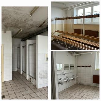 Die Sanierung und barrierefreie Gestaltung der Sanitär- und Umkleideräume haben am 20.03.2025 begonnen. Die Sanitärräume werden komplett entkernt und erfahren eine neue räumliche Aufteilung. Die komplette Heizungs-, Sanitär- und Elektroinstallation wird in diesem Bereich erneuert. Ein wichtiges Element dieser Sanierung ist die Schaffung eines behindertengerechten WC sowie eines separaten Schiedsrichterraumes.