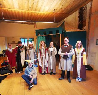 Direkt nach den Osterferien erlebten die sechsten Klassen der Oberschule Trebsen einen historischen Einblick in die mittelalterliche Lebensweise auf dem Schloss Rochlitz. Auf dem Schlosshof erschienen in zeitgemäßer Kleidung eine Kammerzofe, eine Burgdame, ein Mönch und ein Waffenknecht. Die Jungen und Mädchen teilten sich in vier Gruppen auf und starteten mit der Zeitreise ins Mittelalter. Die Kammerzofe führte die jeweilige Gruppe in einen Raum, der sich als „Kleiderkammer“ entpuppte. Nach ein paar interessanten Erläuterungen zu typischen Kleidungsstücken der Zeit konnte jeder entweder in die Kleider eines Burgfräuleins oder einer Magd, in das Männergewand des Burgherren oder eine Mönchskutte schlüpfen. Sogar ein Hofnarr war schnell gefunden. Alle hatten viel Spaß am Verkleiden und konnten somit den edlen Samt und auch den groben Baumwollstoff am eigenen Leib fühlen.