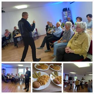 Am 14. April, 14:00 Uhr luden wir zu „Neichen deckt auf“ ein und zur Verstärkung hatten wir uns polizeiliche Unterstützung durch KHK Mathias Bradtke von der Polizei-Beratung Leipzig eingeladen. Doch bevor die Beratung zu den verschiedenen Themen aufgenommen wurde, gratulierten wir den „Geburtstagskindern“ und ließen uns gemeinsam leckeren Kuchen und Kaffee schmecken. Herr Bradtke gab Hinweise zu den Enkeltricks, Anrufen unter Vorgabe, es hätte einen Unfall gegeben und die Verwandten oder Eltern müssen mit Geld die Kosten begleichen. Auch klärte er auf, dass Polizei, Sparkasse oder auch die Staatsanwaltschaft nie Geld bar einfordern würde. Dies würde, wenn es denn erforderlich wäre, immer nur schriftlich erfolgen. Wenn ein Anrufer sich meldet, und sagt, dem Enkel oder auch Bekannten wäre etwas zugestoßen und Sie müssten die Kosten dafür übernehmen, immer erst bei demjenigen persönlich nachfragen, ob es ihnen gut geht und keine Geldbeträge – egal in welcher Höhe - an Fremde übergeben. Lassen Sie auch keine Fremden Leute in Ihre Wohnung, es könnten Betrüger sein und sie kommen meist nicht allein. Also Wohnungstür zu. Auch nach dem Vortrag, der in einer sehr lockeren Art und Weise von Herrn Bradtke durchgeführt wurde, bekamen unsere Senioren noch persönlichen Rat in ihren Angelegenheiten. Und jeder konnte in den mitgebrachten Materialien zu Hause nochmal in Ruhe nachlesen. Nach dem Vortrag wurde sehr rege das Tanzbein geschwungen. Auch zum Rock’n‘ roll tanzten unsere Senioren. Von ihnen sind einige über 80 bzw. fast 90. Sie tanzten, als wären sie noch Teenager. Großartig, wir hätten nicht besser tanzen können. Es wurde ein sehr gemütlicher und entspannter Nachmittag. Ganz so, wie es unseren Senioren gefiel. Den Abschluss bildete das Abendessen. Was es gab: selbst gemachter Nudelsalat mit Bulette und saure Gurken. Es war wie immer sehr lecker.