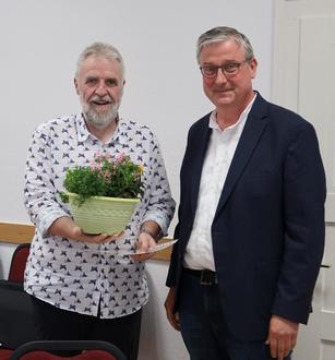 Bürgermeister Stefan Müller sprach im Namen des Stadtrates den Glückwunsch zur 20-jährigen ehrenamtlichen Tätigkeit als Stadtrat an Herrn Markus Praprotnick aus.