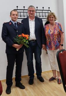 Bürgermeister Stefan Müller gratulierte Kamerad Magnus Fleck und wünschte alles Gute für seine Arbeit.