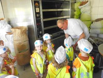 Die Blaumeisengruppe der Kita „Vogelnest“ hat sich in den Juniwochen mit einem kleinen Projekt beschäftigt: „Vom Korn zum Brot“ war das Thema. Die Kinder wollten wissen, wo kommt unser Brot her, was ist im Brot drin, wo kommen die Zutaten her, wo wächst das Getreide. Durch Unterstützung von Eltern aus unserer Gruppe, die uns Material zur Verfügung stellten, gab es schon eine Menge interessante Dinge zu erfahren: welche Getreidearten gibt es, was wird nach der Ernte daraus gemacht, was braucht man für Fahrzeuge auf dem Feld und vieles mehr. Wir haben Getreide gesammelt, uns den Ablauf der vielen Arbeitsschritte vom Korn zum Brot angeschaut, selbst gebacken und Getreidekörner ausgesät. Zum Abschluss des Projektes war ein Besuch beim Igelbäcker von Trebsen, in der Bäckerei Töpfer geplant. Alle waren schon am Morgen aufgeregt, was uns dort wohl erwarten würde. Nach dem Frühstück ging es los. Erst einmal musste der Kinoberg bezwungen werden. Das war ganz schön anstrengend, denn die Sonne schien schon kräftig vom blauen Himmel. Zum Glück ging es gleich wieder Bergab und schnell waren wir am Ziel. In der Bäckerei wartet schon Herr Töpfer mit seinen Helfern auf uns. Alle durften sich in der Backstube umsehen. Herr Töpfer erklärte uns jedes Gerät. Der große Backofen war sogar noch warm und hat die Backstube ganz schön aufgeheizt. Die Knetmaschine wurde angeworfen und wir haben gesehen, wie Brötchen hergestellt werden. Interessant waren für die Kinder auch die vielen Säcke mit unterschiedlichen Getreidesorten und wo diese wachsen, nämlich auf den Feldern um Trebsen und Umgebung. Auch die Mühle zum Getreide mahlen ist nicht weit entfernt. Die Kinder wollten von Herrn Töpfer wissen, wann ein Bäcker aufstehen muss: ganz schön zeitig, mitten in der Nacht. Zum Abschluss gab es noch für alle leckere Pfannkuchen und ein Getränk, damit wir uns gestärkt auf den Rückweg machen konnten. Wir haben viele neue Dinge erfahren und einen interessanten Vormittag erlebt. Vielen Dank an Herrn Töpfer und seine Helfer, dass wir vorbeischauen konnten.