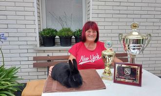 Es war das Wochenende von Annemarie Schierz. Zu der Ehrennadel erhielt sie noch den Ehrenpreis des Landesverbandes für die besten Kaninchen der Ausstellung. Dazu noch weitere Pokale für sehr gute Tiere. (Foto) Auch das ist nur durch viel Züchterfleiß zu schaffen.