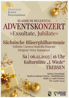 Unser nächstes Konzert mit der Sächsischen Bläserphilharmonie in der Sport- und Kulturstätte „Johannes Wiede“ in Trebsen findet am 06.12.2025 statt.