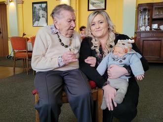 Der Generationsunterschied zeigte sich deutlich, als Mutter Lisa-Marie Schultka mit dem jüngsten Einwohner Hendrik Schultka 7 Wochen alt gratulierten.