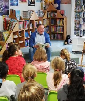 Die Bürgermeister beider Städte, Bengt Kanzler sowie Helmut Wenzel sollten in diesem Jahr erstmalig die Vorleseorte tauschen. Vetschauer Grundschüler hatten viel Spaß mit Helmut Wenzel beim Lauschen des Kinderbuches „Tagebuch einer Killerkatze“.