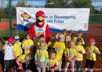 Ziel der Kita-Olympiade ist es, die Kinder spielerisch für Sport und Bewegung zu begeistern und sie gleichzeitig in ihrer motorischen Entwicklung zu fördern. Als krönenden Abschluss erhielten die Zauberländer Medaillen sowie ein gemeinsames Foto mit Fritzi, dem Maskottchen der Aktion, als Andenken.