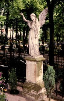 Auf dem dahinter liegenden Weg steht das Engeldenkmal. Dieser Engel trauert um zwei junge Frauen, 19 und 21 Jahre alt, die an Diphtherie innerhalb von zwei Tagen um 1814 verstarben. Sie waren die Töchter des damaligen Bürgermeisters Friedrich Samuel Wedel.