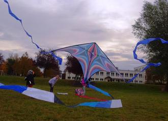 Der Mittwoch und Donnerstag standen im Zeichen des Drachens, ob Drachensteigen oder Drachenbasteln. Wir hatten drachenstarke Tage. Der Wind stand günstig und so mancher bunte Geselle hob gen Himmel ab. Bunte Minidrachen brachten triste Räume zum Strahlen.