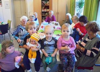 Der Überraschungsbesuch fand großen Anklang bei den Damen. Sie freuten sich sehr, als die kleinen Mädchen und Jungen mutig ihre mitgebrachten Puppen überreichten und um neue Puppensachen baten.