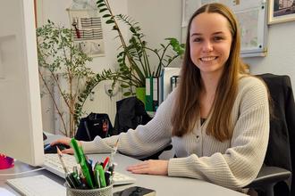 Laura Kruse, frisch ausgelernte Immobilienkauffrau ist glücklich an ihrem neuen Arbeitsplatz bei der WIS in Vetschau Foto: C. Hentschel
