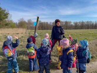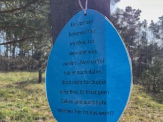 Die Radduscher Kinder der Einrichtung "Marjana Domaškojc" sind bei ihrem Waldtag dem Osterhasen begegnet. In zwei Gruppen folgten sie seinen Spuren. Die Erzieherinnen hatten zuvor Aufgaben und Rätsel entlang des Weges verteilt. So mussten die Kinder beispielsweise drei weitere Namen des Osterhasens nennen - oder welche Geräusche der Hase gerade hört, herausfinden. Diese letzte Aufgabe vor der Zielankunft in ihrem Waldhotel "Kuckuck" erwies sich als besonders schwierig, da die meisten Geräusche von ihnen selbst kamen. Erst nach einer etwas andauernden "Selbstdisziplinierung" drangen Vogel- und Windgeräusch an ihre Ohren.