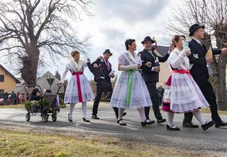 Der Stradower Fastnachtszug startete mit 51 Paaren am örtlichen Gemeindezentrum. Besonders viele Kinder und Jugendliche beteiligten sich am Umzug, ganz voran gingen die Kleinsten, stolz den Besen tragend - denn mit ihm war zuvor der Winter „ausgetrieben“ worden. Den Schluss des Zuges bildeten Nadja und Roy Bielagk, sie zogen den Bollerwagen mit den Kindern Willi Bielagk und Emil Peschang.