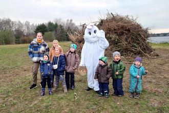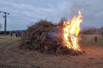 Eine Woche nach dem Frühjahrsputz stand das diesjährige Osterfeuer in Koßwig auf dem Programm. Ab 09:00 Uhr konnten die Einwohner auf der bereitgestellten Fläche ihren Baumverschnitt abladen. Das ganze Dorf war fleißig und so entstand im Laufe des Tages ein doch beachtlicher Haufen, der auch dank zahlreicher Helfer, die den Friedhof von altem Gehölz befreiten, weiter anwuchs. Bis zum frühen Nachmittag rollten die Kleintraktoren und Autoanhänger zum Platz. Am frühen Abend versammelten sich nach und nach die Koßwiger rund um das Feuer, welches gegen 19:30 Uhr fachmännisch von den Kameraden der ortsansässigen Freiwilligen Feuerwehr entzündet wurde. Bei Sekt und Bier läutete man so das Osterfest in geselliger Runde ein. Auch an die Jüngsten des Dorfes wurde gedacht: sie konnten über einem eigenen kleinen Feuer Stockbrot rösten. Auch der Osterhase schaute vorbei und verteilte ein paar Süßigkeiten und bunte Eier. Bis Mitternacht loderten die Flammen und waren der Mittelpunkt eines geselligen Abends in Koßwig. Der Ortsbeirat bedankt sich für die Bereitstellung der Fläche, bei allen Helfern und Helferinnen des Tages sowie bei Herrn Andre Hantow für das Aufschieben des Osterfeuers.