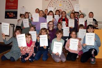 Zusammen mit den Mitarbeitern tauchten alle nochmal ins Osterfieber ein. Das Wissen über die verschiedenen Techniken wie Wachs-, Ätz- und Kratztechnik wurden aufgefrischt. Und dann machten alle große Augen und konnten ihre Werke als kleine Galerie betrachten. Frau Kliem hatte für jeden eine Urkunde und kleines Geschenk parat. Mit Osterbräuchen wie z.B. Waleien und Osterbrot-Eier-Lauf sowie einer gemütlichen Tee- und Keksrunde fand das Projekt einen würdigen Abschluss.