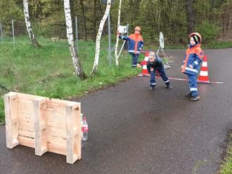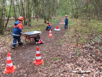 Am 29. April waren alle Jugendwehren der Stadt Vetschau eingeladen, sich bei einem Orientierungslauf zu messen. Insgesamt 53 Kameradinnen und Kameraden der Jugendfeuerwehr zwischen 6 und 18 Jahren trafen sich am Start der ca. 5 km langen Rundstrecke am Sommerbad. 20 Betreuer, Feuerwehrleute der Ortswehren, hatten für den Orientierungslauf 6 Stationen vorbereitet, an denen die Teilnehmer ihr Wissen und Geschick beweisen konnten. In kleinen Gruppen ging es dann auf die Strecke. An der Station „Schlauchkegeln“ musste versucht werden, mit einem Schlauch Flaschen umzukegeln, was gar nicht so leicht war. An einer anderen hieß es „Sägen und Schätzen“. Die angehenden Feuerwehrkameraden sollten eine Baumscheibe mit einer genauen Breite von 5 cm absägen und im umliegenden Wald ein Holzstück mit einem Gewicht von genau 2 kg finden. Alle Stationen hatten ein gewisses Zeitlimit, dass es einzuhalten galt. Man merkte, dass die Kids einen riesen Spaß dabei hatten. Am Schluss waren die Kinder alle sichtlich geschafft. Zur Mittagszeit hatte die Feuerwehr Göritz Logistik ein Versorgungszelt aufgestellt.
