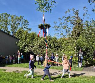 Wir haben am 30. April in unserer Kita „Sonnenkäfer“ wieder den Maibaum aufgestellt. Zu vor wurde der Kranz mit Tannengrün geflochten und mit bunten Bändern geschmückt. Es ist ein alter Brauch und eine alljährliche Tradition in unserer Einrichtung. Dazu versammelten sich die Kinder mit ihren Erzieherinnen in einem Kreis um den Maibaum. Zur Begrüßung sangen wir alle gemeinsam ein Lied und sprachen über die Bedeutung dieser Tradition. Der Maibaum ist das Symbol des Frühlings. Er steht für neues Leben, Fruchtbarkeit, Gedeihen und Wachstum. In vielen Städten und Dörfern unserer Region wird der Maibaum aufgestellt und es gibt eine kleine Maibaumfeier.