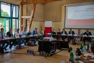 Matthias Hantscher, als Sportvereinschef Gastgeber der Veranstaltung, betonte in seiner Begrüßung den dörflichen Zusammenhalt, der zu einem großen Gemeinschaftsgefühl geführt hat. „Viele Radduscher und Radduscherinnen sind irgendwie involviert oder einbezogen, besonders auch die Kinder. Von 190 Mitgliedern im Sportverein sind die Hälfte Kinder. Jeder packt an, wenn es was zu tun gibt, da ist sich selbst der Zahnarzt nicht zu schade und greift zur Steinsäge.“ Nach der Begrüßung wurden die Berichte von Experten angehört, die sich mit dem Strukturwandel und besonders der Wasserhaushaltung befassten. In sehr umfangreichen Expertisen wurde verdeutlicht, dass es ohne enorme Anstrengungen nach dem Kohleausstieg auch einen riesigen Wassermangel geben wird. Die Grubenentwässerung sorgt noch nach wie vor für einem relativ normalen Wasserstand in der Spree. Danach könnte die Spree, wie schon in früheren Jahrhunderten, zeitweise trockenfallen, wie aktuell schon die Schwarze Elster. Hochwasser werden ohnehin nur selten auftreten und könnte durch die vorgelagerten Speicher nutzbringend aufgefangen werden. Es schwebte über den Köpfen: Spreewald ohne Wasser, ohne Wasser dann auch Berlin ... Das mochte man sich nicht wirklich vorstellen. Wie dies vielleicht verhindert werden kann, war Gegenstand der nachfolgenden Diskussion. Dass dies sogar ganz schnell geschehen muss, praktisch in Tesla- oder Terminalgeschwindigkeit, nicht mit einer 10- oder gar 15-jährigen vorgeschalteten Planungsverfahren war ebenso klar.