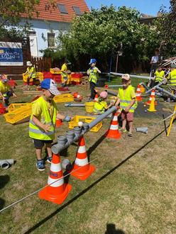 An einem sonnigen Maitag freuten sich die Kinder der Vetschauer Kita Zauberland nicht nur über das schöne Wetter, sondern auch auf ganz besondere Gäste mit einem spannenden Angebot im Gepäck. Als das Team der Brandenburgischen Sportjugend ihr gesamtes Equipment aus dem Bewegungsmobil ausgepackt und im Außenbereich der Kita positioniert hatte, gab es bei den Zauberländern kein Halten mehr. Es wurde entdeckt, ausprobiert, gebaut, eingestürzt und neu zusammengesteckt – die sogenannte Bewegungsbaustelle war ein voller Erfolg und wurde begeistert angenommen. Die Kinder konnten ihrer Kreativität und Neugier freien Lauf lassen und waren dabei draußen aktiv in Bewegung. Mission erfüllt. Eine Fortsetzung ist jederzeit möglich, denn teilnehmende Kitas dürfen im Anschluss an den Aktionstag ein Starterset der Bewegungsbaustelle behalten und weiter nutzen. Wir danken dem in Calau ansässigen Kreissportbund OSL für die Information zu dieser und vielen weiteren (förderfähigen) Aktionen. Zur Initiative „Kita in Bewegung“: „Die Brandenburgische Sportjugend im LSB Brandenburg e. V. möchte mit der Initiative „Kita in Bewegung“ den quantitativen Ausbau sowie die qualitative Weiterentwicklung von frühkindlichen Bewegungsangeboten für Kindertageseinrichtungen fokussieren. Gefördert wird die Aktion seit 2021 aus dem Landesprogramm frühkindliche Bildung und Kindertagesbetreuung des Ministeriums für Bildung, Jugend und Sport. Die Aktion wird direkt in den Tagesablauf der Kita integriert und mit Kindern und pädagogischem Fachpersonal durchgeführt. Ein Starterset der Bewegungsbaustelle verbleibt danach in der Kita.“ (www.sportjugend-bb.de)