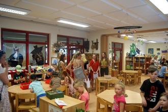Der Hort der Möglichkeiten öffnete seine Türen zum Schnuppern. Um 16.00 Uhr begrüßte die Hortleitung, Frau Anke Gräfe, alle kleinen und großen Gäste bevor die Kinder der Theaterwerkstatt zeigte, was sie in diesem Jahr einstudiert hatten. Das Theaterstück „Schneeweißchen und Rosenrot“ frei nach den Gebrüder Grimm gab einen kleinen ersten Einblick in die pädagogische Arbeit im zukünftigen Hortalltag. Im Anschluss waren alle Gäste eingeladen, den Hort zu erkunden und Fragen zu stellen. Kleine Mit-mach-Aktionen wie Pusteschmetterlinge basteln und fliegen lassen, ließen ein erstes Kennenlernen zwischen den baldigen Hortkindern und Horterziehern zu. Mit vielen neuen Eindrücken und einer Startermappe mit allen wichtigen Dokumenten als Begrüßungsgeschenk verließen alle gegen 17.30 Uhr den Hort.