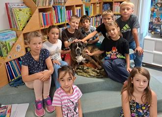 Wir danken an dieser Stelle der Hundebesitzerin Frau Antje Simon aus Fleißdorf und hoffen auf einen weiteren Einsatz ihrer Hündin in der Bibliothek.