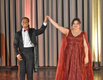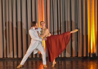 Danach ging es mit der Polka Unter Donner und Blitz in der das Orchester im rasenden Tempo seine Virtuosität unter Beweis stellt, weiter. Das Ballett folgte mit Hijo de la luna, spanisch für Kind oder Sohn des Mondes, bevor dann wieder die Sopranistin Jessica Leao das bekannte „Vilja“ Lied der Hanna aus der Operette „Die lustige Witwe“ mit ihrem klaren Sopran gefühlvoll vortrug. Nach dem ersten Stück aus der Feder des nach der Familie Strauß bekanntesten Operettenkomponisten Franz Lehár folgten „Dein ist mein ganzes Herz“ aus dem Land des Lächelns wieder mit dem aus Jamaika stammenden Tenor Kyle Fearon-Wilson bevor dann mit dem weltberühmten Duett Lippen schweigen, ‘s flüstern Geigen, hab mich lieb … das Konzert einen weiteren Höhepunkt erreichte. Beide Solisten prägten den Abend mit ihrer Virtuosität und Klarheit, wobei der Tenor bei den letzten beiden Stücken dann bei den zweiten Geigen Platz nahm und das Orchester „unterstützte“.