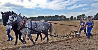 Interessant war, wie schon im letzten Jahr die Vorführung herkömmlicher bzw. traditioneller Bodenbearbeitung mit dem Pferd durch Familie Böhme.