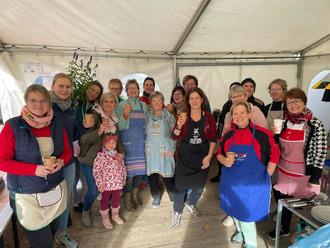 Neben dem Magen kamen auch die Augen und die Ohren auf ihre Kosten. Wie jedes Jahr wurde das Vereinshaus im großen und kleinen Saal, wie auch die Heimatstube von den Helfern herbstlich dekoriert. Im feierlich geschmückten Festzelt spielte die Akkordeongruppe aus Olbersdorf und es gab frisch gezapfte Brause für Jung und Alt. Bei gemütlicher Atmosphäre konnte man heißen Kaffee, leckere Kuchen und einen kleinen Plausch mit alten und neuen Freunden genießen.