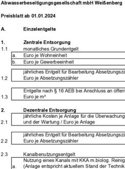 Ab 01.01.2024 gelten nachfolgende geänderte Abwasserentsorgungsbedingungen der Abwasserbeseitigungsgesellschaft Weißenberg mbH. Die hier nicht aufgeführten Vertragsteile behalten ihre Gültigkeit.