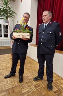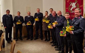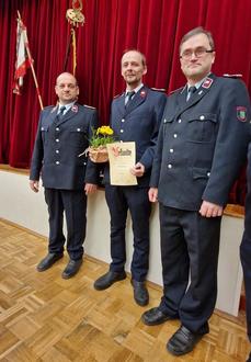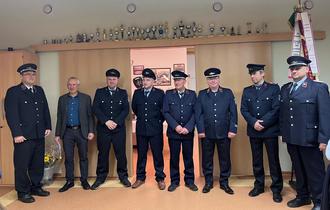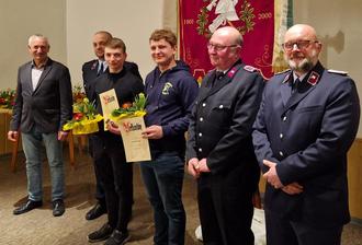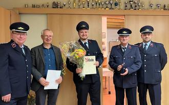 Ehrungen wurden ebenfalls vorgenommen: Robert Zudolski wurde zum Löschmeister befördert, Dominik Gerber erhielt die Beförderung zum Oberfeuerwehrmann.