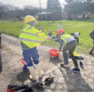 Sechs Stationen mit handwerklichem Charakter waren vorbereitet und gaben Allen die Möglichkeit, sich frei zu entscheiden, zu betätigen und ihre Interessen zu verfolgen. Spielerisch verübten die Kinder mit Begeisterung die Tätigkeiten eines Gärtners, Malers, Fliesenlegers und Bäcker´s. Es wurden Blumen in Töpfe gepflanzt, Bretter mit bunten Farben und voller Fantasie bemalt, Mosaiksteine zu Mustern verlegt und Schmuck-und-Geschenkeanhänger aus Salzteig geformt und verziert. Voller Elan nahmen die Kinder auch an der Wettkampfstation der Bauarbeiter teil, bei der sie sich schnell verkleiden und beim Wettlauf mit der Schubkarre gewandt und flink sein mussten, um einen Preis zu erlangen. Auch das Erkennen von Handwerksberufen anhand von Bildern, das namentliche Benennen dieser und gleichzeitige Zuordnen der richtigen Werkzeuge und Werkstoffe zu den unterschiedlichen Berufen bereitete allen Teilnehmern spielerisch viel Spaß und sie forderten sich gegenseitig heraus, ihr Wissen zu testen.