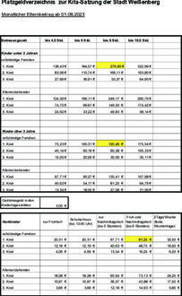 | Die Elternbeiträge werden auf der Grundlage der zuletzt bekannt gemachten Betriebskosten anteilig ermittelt. | |