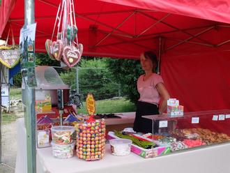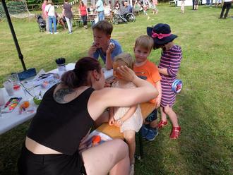 Das sonnige Wetter begleitete uns den ganzen Tag durch unser Programm. Zu Beginn konnten wir den leckeren selbstgebackenen Kuchen der Einwohner genießen. Neben den Attraktionen auf dem Spielplatz gab es Hüpfburg, Bastelstraße, Kinderschminken, Süßigkeitenstand und Eis. Verschiedene Fruchtbowlen und Fassbier sorgten für eine bunte Erfrischung während der Veranstaltung. Abends konnte am Lagerfeuer Knüppelteig gebacken werden.