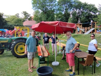 Auf die Kinder warteten Hüpfburg, Kinderschminken, Schmuckgestaltung, Ponyreiten und natürlich die heißbegehrten Traktorrundfahrten. Die alljährliche Eisüberraschung drohte auszufallen, da der Eiswagen kurzfristig absagt hatte. Dank der Initiative engagierter Eltern gelang es, auf die Schnelle Softeis aus der Bahnhofsgaststätte Weißenberg zu organisieren.