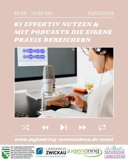 Die Anmeldung kann ab sofort über unsere Website erfolgen: https://www.jugendring-westsachsen.de/event/ki-und-podcast/
