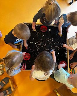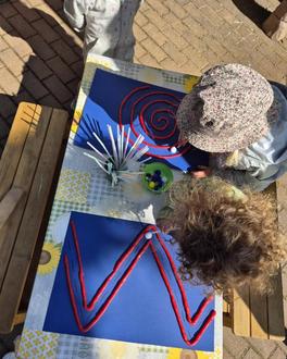 Dazu wurden unter anderem Seifenblasen selbst hergestellt und von allen begeistert pustend im Garten verteilt. Es entstanden bunte Pustebilderkunstwerke, Flugzeuge wurden gebaut und auf Flugtauglichkeit getestet.
