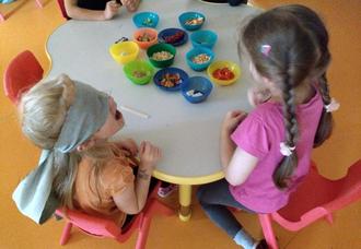 Also wurde es in der vorletzten Woche „explosiv“: viele Experimente wurden von den Kindern durchgeführt. Was schwimmt, was nicht, was passiert, wenn man einen Luftballon mit Backpulver auf eine Flasche mit Essig stülpt und vieles mehr. Eine Verkostung brachte unsere Geschmacksnerven auf Hochtouren. Wer sich traute, konnte sogar mit verbundenen Augen kosten.