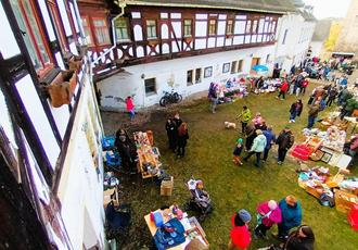 Der Flohmarkt am Sonntag, dem 19. Oktober 2025, auf Schloss Wiesenburg war ein voller Erfolg. 3.200 EUR konnten zugunsten von Schloss Wiesenburg erlöst werden aus verkauftem Schlossinventar, Spenden von Besuchern sowie aus dem Verkauf von Speisen und Getränken.