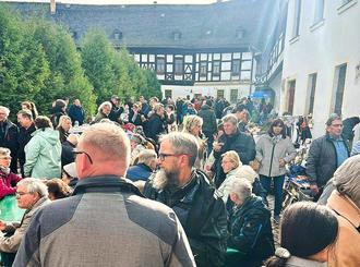 19. Oktober 2025. Viele Besucher strömten in den Innenhof der Wiesenburg zum Flohmarkt. Foto von Denise KAISER, Wiesenburg.