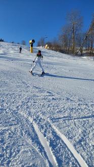 Während einige Mädchen und Jungen gleich von Anfang an ihre Abfahrtstechniken am „großen“ Skihang durch verschiedene Übungen u.a. zum Belastungswechsel festigten und verbesserten, versuchte sich der Großteil der Kinder am „kleinen“ Hang an ersten Bremsübungen und später am Kurvenfahren.