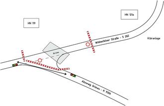 Während der Bauzeit muss die S 282 voll gesperrt werden. Die Umleitung verläuft über die B 93 nach Wilkau-Haßlau, weiter über die S 277 nach Friedrichsgrün und über die S 283 nach Wildenfels. Fußgänger können die Baustelle passieren.