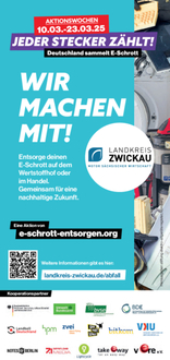 Rund um den Global Recycling Day am 18. März 2025 und den International E-Waste-Day am 14. Oktober 2025 finden die diesjährigen Aktionswochen "Jeder Stecker zählt" der Stiftung Elektro-Altgeräte Register statt. Machen auch Sie mit, indem Sie Ihre ausgedienten Elektro(nik)-Altgeräte fachgerecht entsorgen. Informationen zur Aktionswoche, der Rückgabe und dem Recycling von Geräten finden Sie unter e-schrott-entsorgen.org oder auf Social Media unter #jedersteckerzählt.
