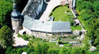 Juni 2006: Schloss Wiesenburg von Südosten. Einzig mögliche Zuwegung für LKW und Feuerwehr. Luftbild zur 800-Jahr-Feier Wiesenburg/Wiesen.