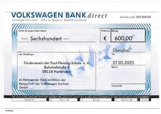 Am 27. Mai wurde uns symbolisch im VW Werk ein Scheck über 600 € überreicht, Geld welches wir für weitere Bänke auf unserem Schulhof verwenden wollen.