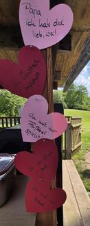 Die Kita und das Außengelände waren liebevoll mit herzlichen Sprüchen und Blümchen geschmückt.