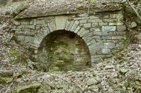Vorher: Das 1991 mit einer 6 m starken Betonblombe verwahrte Mundloch des „Engländerstolln“ vor der Aufwältigung im Jahre 2003.